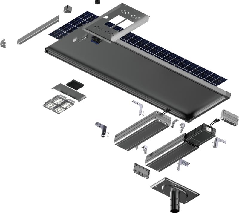 集高轉(zhuǎn)化率單晶硅太陽(yáng)能板、高光效LED燈模組、智能電池管理系統(tǒng)、高效控制器于一體的太陽(yáng)能照明系統(tǒng)。