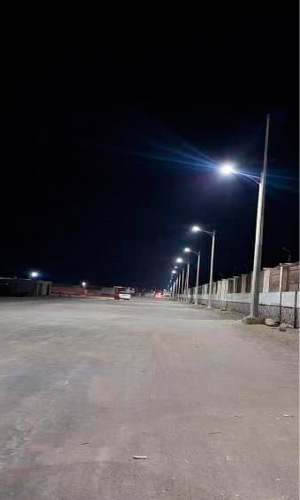 這是中東地區(qū)最新的項(xiàng)目,位于也門(mén)哈德拉穆特市。該項(xiàng)目選擇的模型是80W的和諧二體化太陽(yáng)能路燈,安裝在8M的燈桿上,整體采用高轉(zhuǎn)化率單晶硅太陽(yáng)能板、高光效LED模組、智能電池管理系統(tǒng)、高效控制器。蓄電池和控制器都集成在太陽(yáng)能板上,同時(shí)LED采用高強(qiáng)度進(jìn)口PC光學(xué)透鏡和蝙蝠翼型配光設(shè)計(jì),提供均勻布光。